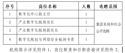 為推進(jìn)集團(tuán)公司“2035一流戰(zhàn)略”落地和國(guó)有資本投資公司改革,加快推動(dòng)集團(tuán)總部職能轉(zhuǎn)型,相繼組建成立國(guó)家電投財(cái)務(wù)共享服務(wù)中心(簡(jiǎn)稱“財(cái)務(wù)共享中心”)和國(guó)家電投數(shù)字化管理中心(簡(jiǎn)稱“數(shù)字化中心”)。財(cái)務(wù)共享中心和數(shù)字化中心是集團(tuán)公司推進(jìn)管理數(shù)字化、集約化,提升管理效率和質(zhì)量的服務(wù)保障中心,是建設(shè)世界一流清潔能源企業(yè)的重要支撐機(jī)構(gòu)。根據(jù)工作需要,公開選聘以下人員。