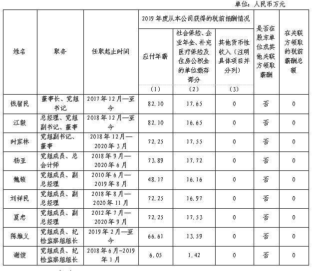 國家電力投資集團(tuán)有限公司企業(yè)負(fù)責(zé)人2019年度薪酬情況