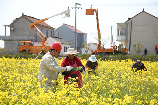 4月9日,在豐樂(lè)村開(kāi)展不停電作業(yè)的長(zhǎng)興供電公司,為當(dāng)?shù)剞r(nóng)民進(jìn)行用電安全的科普工作