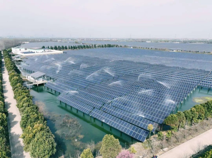 ▲安徽公司淮南公司盤塘光伏電站全周期智慧清洗系統(tǒng)正在清洗組件。