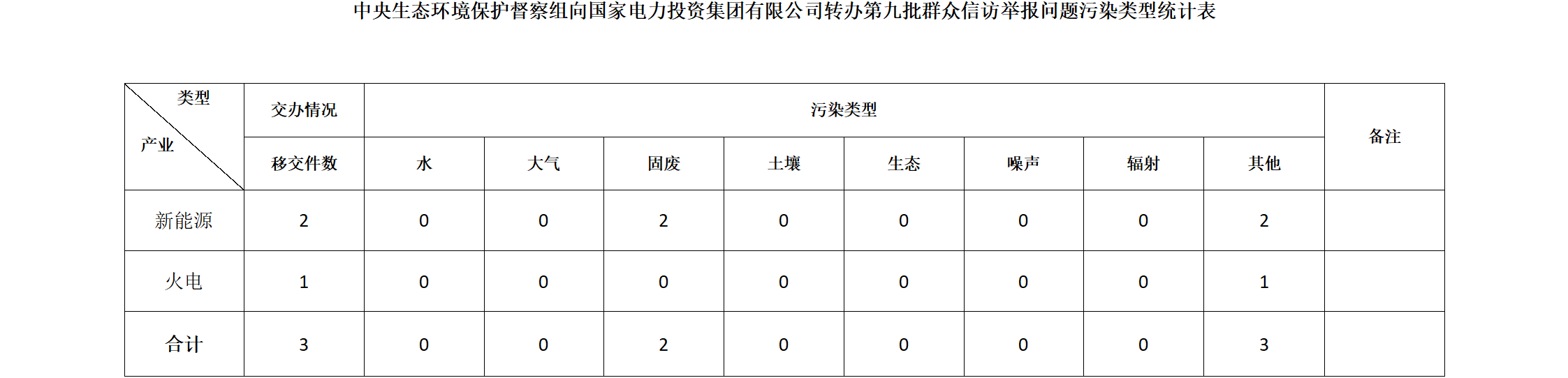 6月10日,中央第八生態(tài)環(huán)境保護督察組向國家電力投資集團有限公司移交第九批群眾信訪舉報件3件,其中來電0件,來信3件。涉及固廢問題2個、其他問題3個。所有舉報件辦理工作已第一時間進入調查核實辦理程序,辦理情況將按照相關要求反饋督察組,并及時向社會公開。